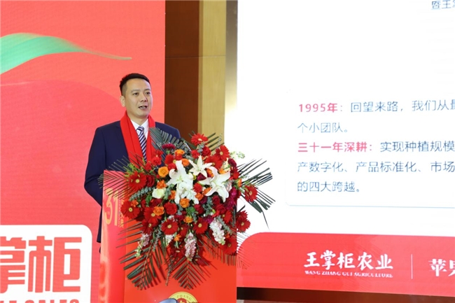 中华全国供销合作总社科教社团部一级巡视员、中国果品流通协会常务副会长、法定代表人张建萍在致辞中指出,王掌柜探索出了一条“扎根源头、厚积薄发、精耕细作、专注品质、换道超车、科技赋能、诚信经营、联农带农”的成功之道,并介绍王掌柜品牌价值从2018年的3.13亿元一路跃升至2025年的21.39亿元,稳居苹果类企业品牌价值榜首,是中国果业品牌化、现代化发展的优秀代表。