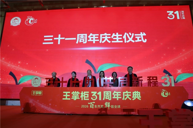 岁序更替,华章日新。1月10日,在山海相拥的胶东半岛,一场中国农业品牌迈向高质量发展的标志性盛会——“三十一力,共启新程”王掌柜31周年庆典暨2026全球百车启航盛典在青岛隆重举行。来自行业协会、学术机构、海内外合作伙伴及媒体代表齐聚一堂,共同回顾王掌柜扎根产业三十一年的奋斗历程,见证其以科技与匠心重塑中国苹果产业的丰硕成果,并擘画面向“十五五”的全球化新蓝图。次日上午,一场气势磅礴的全球百车启航发车仪式隆重举行,同一时间在全国六座王掌柜工厂,逾一百三十辆冷链运输车满载“中国好苹果”驶向全球市场,兑现了品牌对稳定供应与品质承诺的铿锵誓言。
